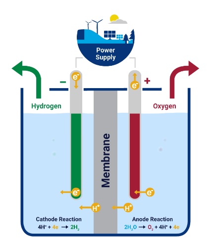 Electrolysis is the very simple process of using electricity to split water into hydrogen and oxygen. Until recently, the cost of electricity has been a roadblock to producing industrial quantities of hydrogen gas through electrolysis. But low-cost renewable electricity technologies have removed this barrier.