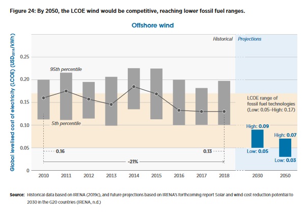 costs should be lower than the cheapest fossil fuel options by 2050.