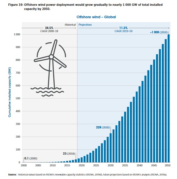 Biggest growth over the next 30 years is expected to be offshore with a forty-fold increase