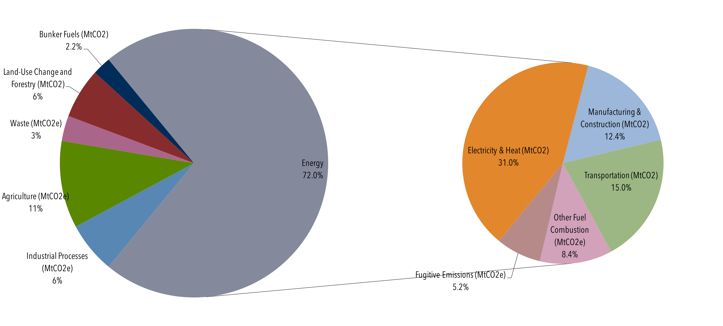 sector, the biggest sources are Electricity and Heat generation, Transportation, and Manufacturing [2].