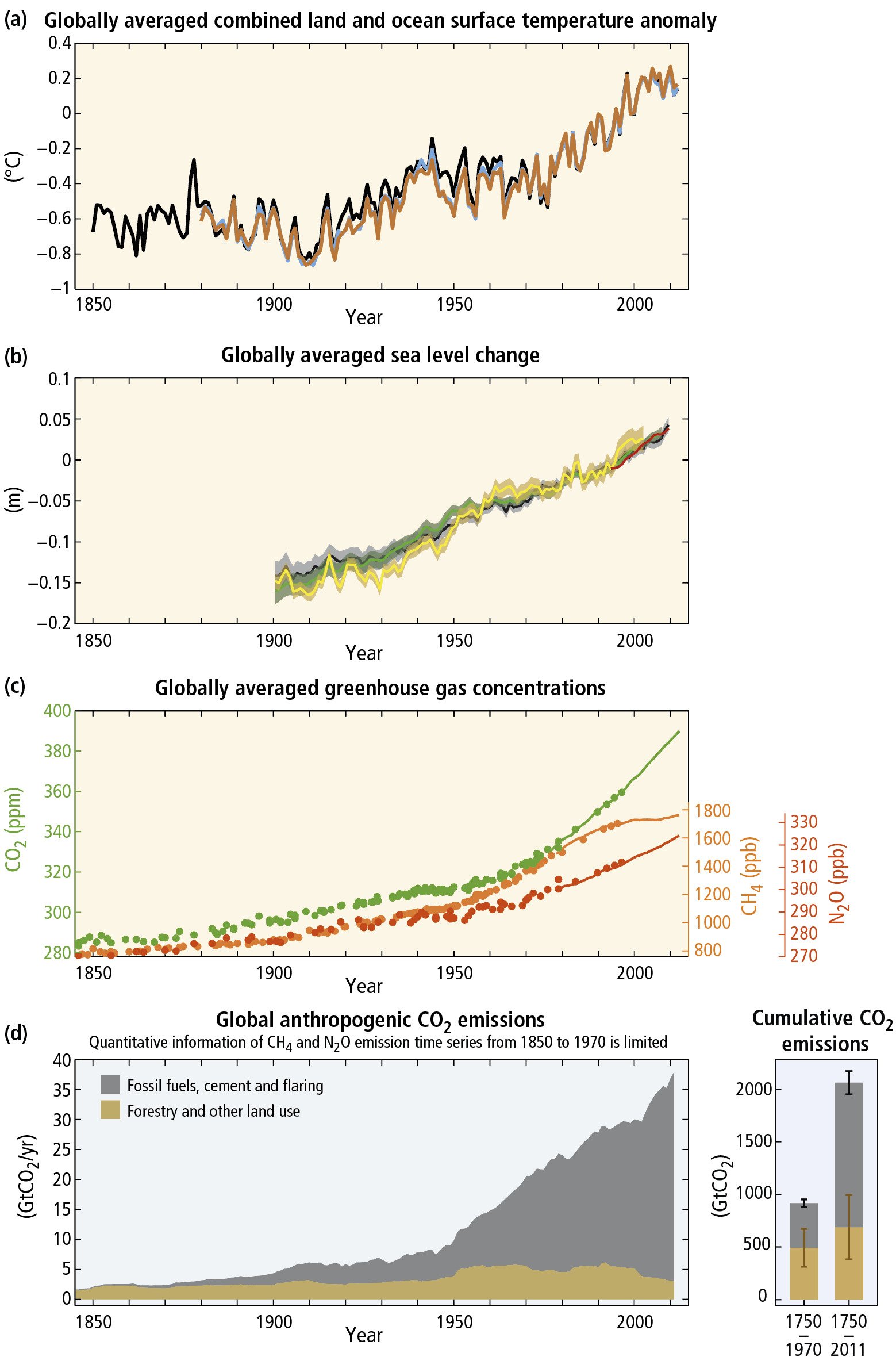 In their 5th Synthesis Report, the IPCC concludes that it is extremely likely that more than half of the observed increase in global average surface temperature from 1951 to 2010 was caused by