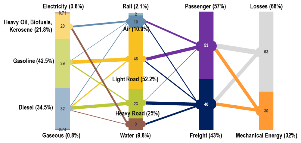 In addition to transitioning to 100% clean electricity, we should also aim to simultaneously transition to electric vehicles. According to IEA estimates for 2017, the transportation industry required: