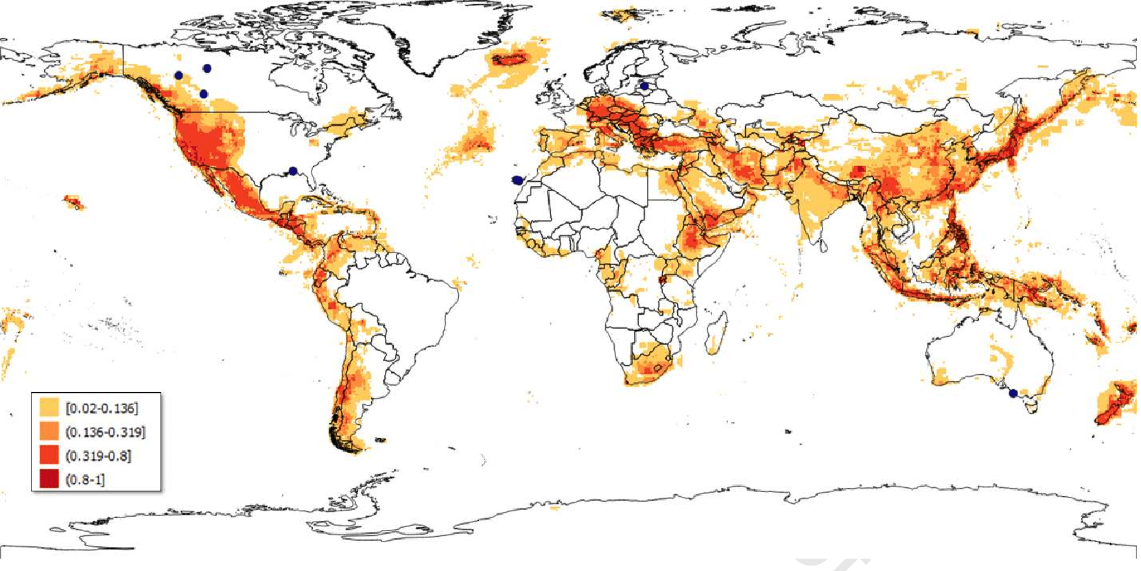 Global map identifying areas suitable for geothermal power plants. Institutes: Cnr-Isti & Cnr-Igg [4] |