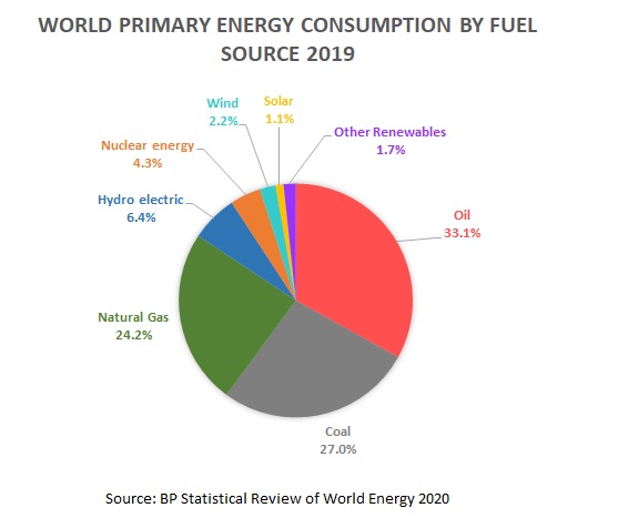 consumption was still derived from fossil fuel sources while less than 10% was derived from truly clean energy sources. According to the BP Statistical Review of World Energy 2020.