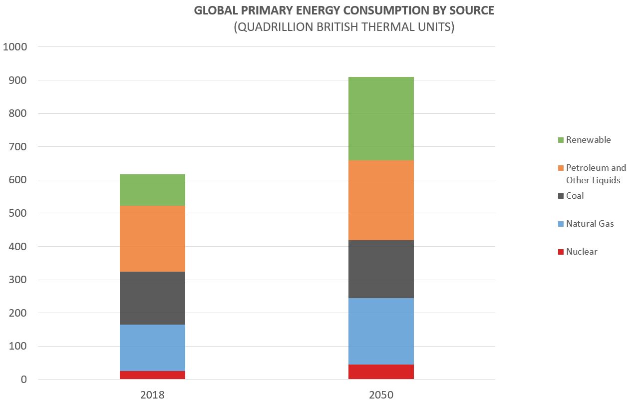 reduction of fossil fuels as a percentage of overall consumption by 2050, total energy consumption will continue to rise over the next 30 years. As